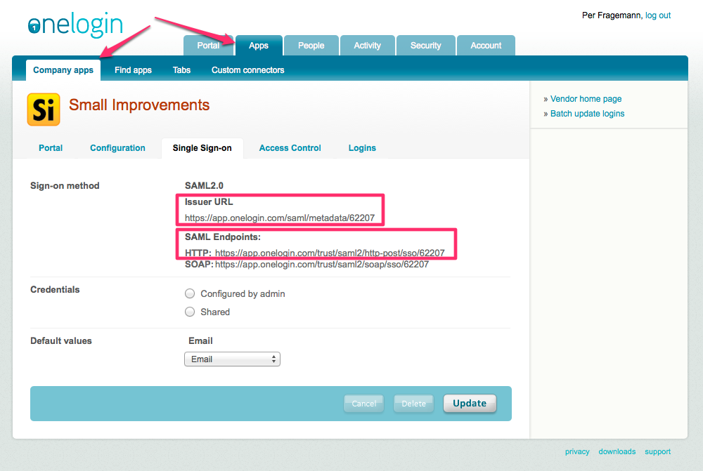 Once configured, your staff can either access Small Improvements from the OneLogin dashboard.
