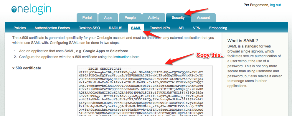OneLogin is a web-based middleware that connects the cloud applications you use with your internal Active Directory or LDAP servers. OneLogin has tons of features, but we’ll only need one, which is the SAML based SSO option.